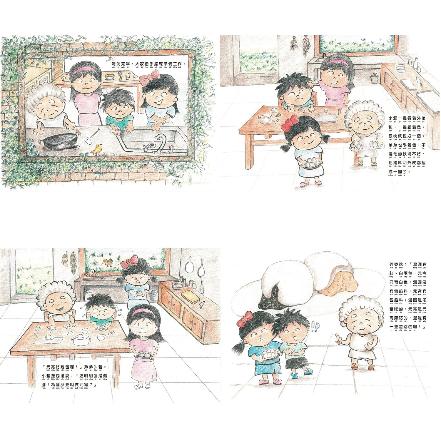 2. 選題廣泛,根據一整年不同節令產生的節日慶典,或是各種民俗活動,做完整豐富的描述,例如「農曆新年」、「元宵」、「端午節」、「中秋節」等等,讓孩子在一整年不同時節都可以有相對應的繪本可以欣賞收藏,兼具藝術欣賞與鄉土教育雙重功能。