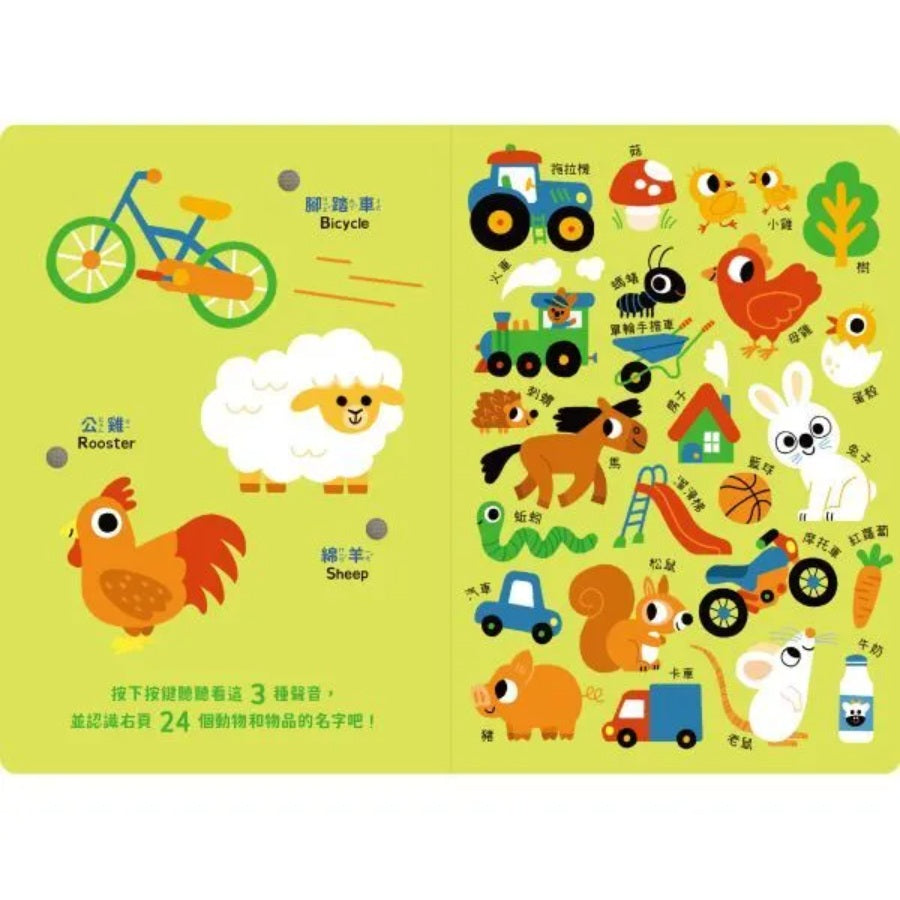你聽過海豚的聲音嗎?你知道貓頭鷹會發出什麼聲音嗎?本書收錄42種的聲音,按下音效鍵即可清楚地聆聽到多種東西發出的聲音,一次認識生活中各式各樣的東西!