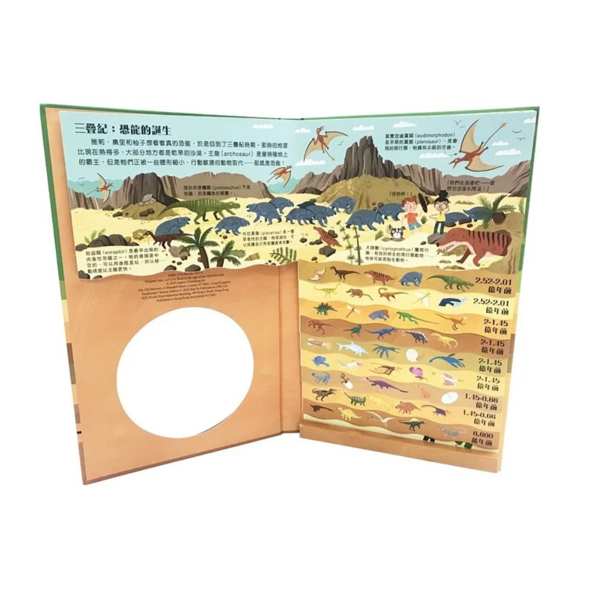 恐龍生活的世界,跟我們現在的地球有什麼不同?現在就帶你逐層探索!從恐龍誕生的時代開始,每翻一頁,就能見到一個恐龍世界的壯麗場景。你可以穿梭10層書頁,看看不同時代生活在海、陸、空的恐龍,以及認識跟恐龍一起生活的史前動物。你還可以玩「找找看」遊戲,在每層中找出指定的生物。