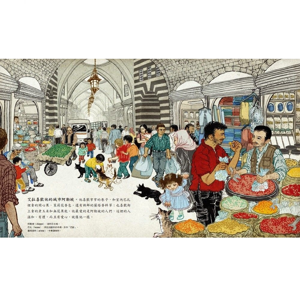 用精采圖像帶領讀者深入感受敘利亞的風土民情,用柔和療育的故事讓我們看到人性的光輝與溫暖,這本書讓我們在難民之外,也關注同樣無家可歸的動物。這是一個在苦難中仍見愛與希望的故事,是一本最適合陪伴孩子關懷世界、培養同理心的新公民繪本!