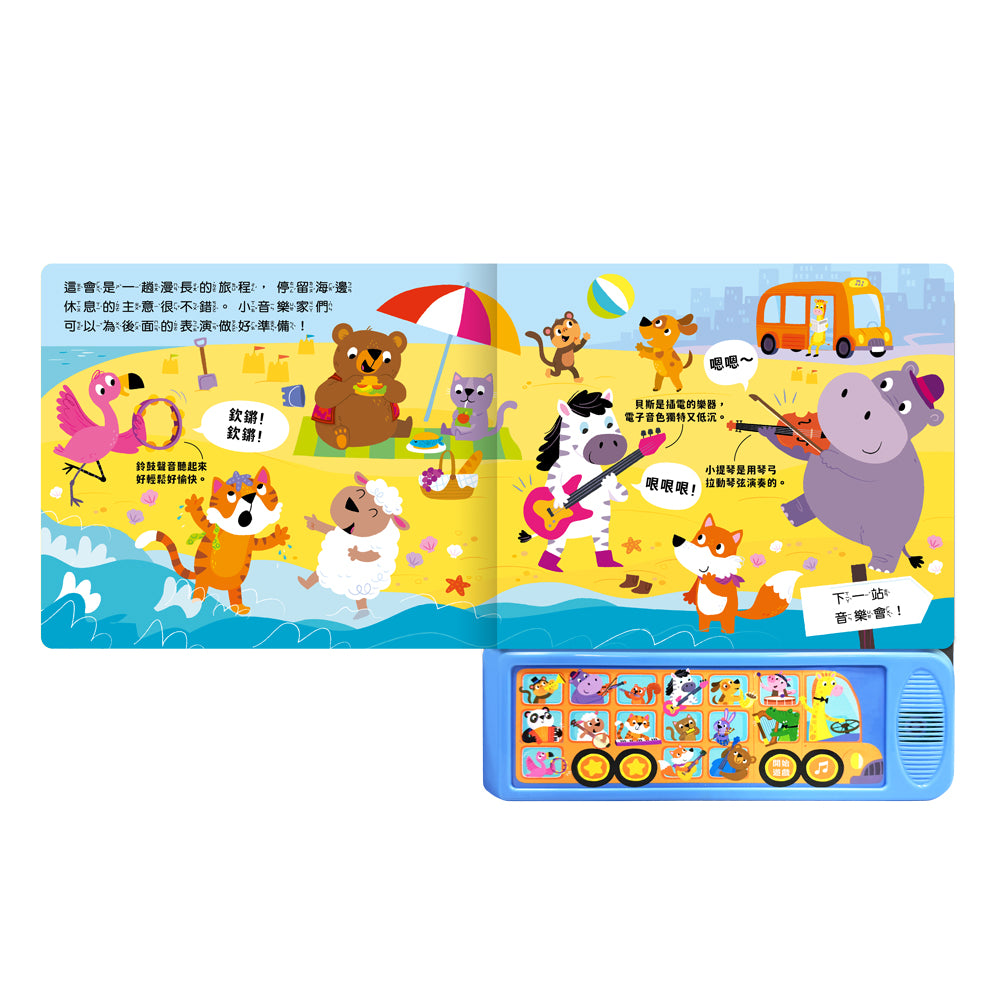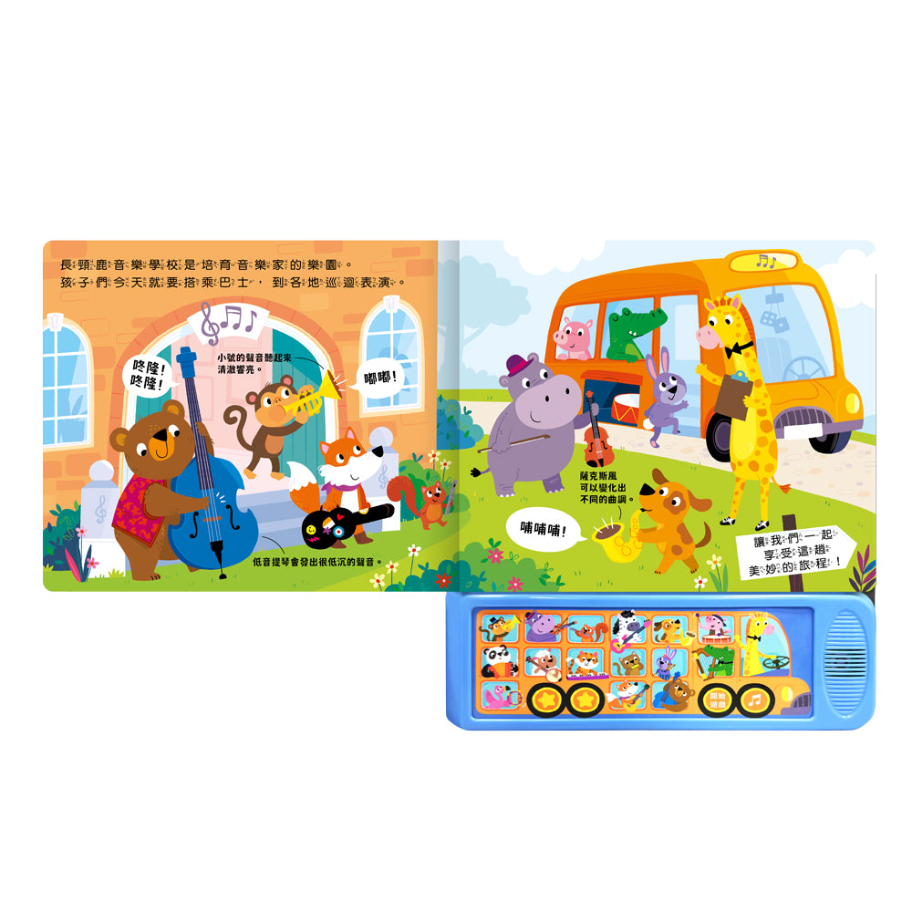 當孩子按下音樂巴士的動物圖案時,能聽見該樂器演奏的美妙音色,