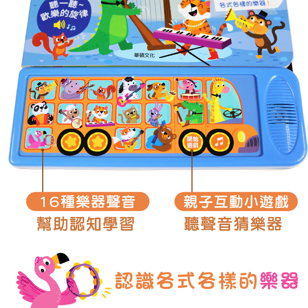 按一按,聽聽樂器的聲音和歡樂的旋律。