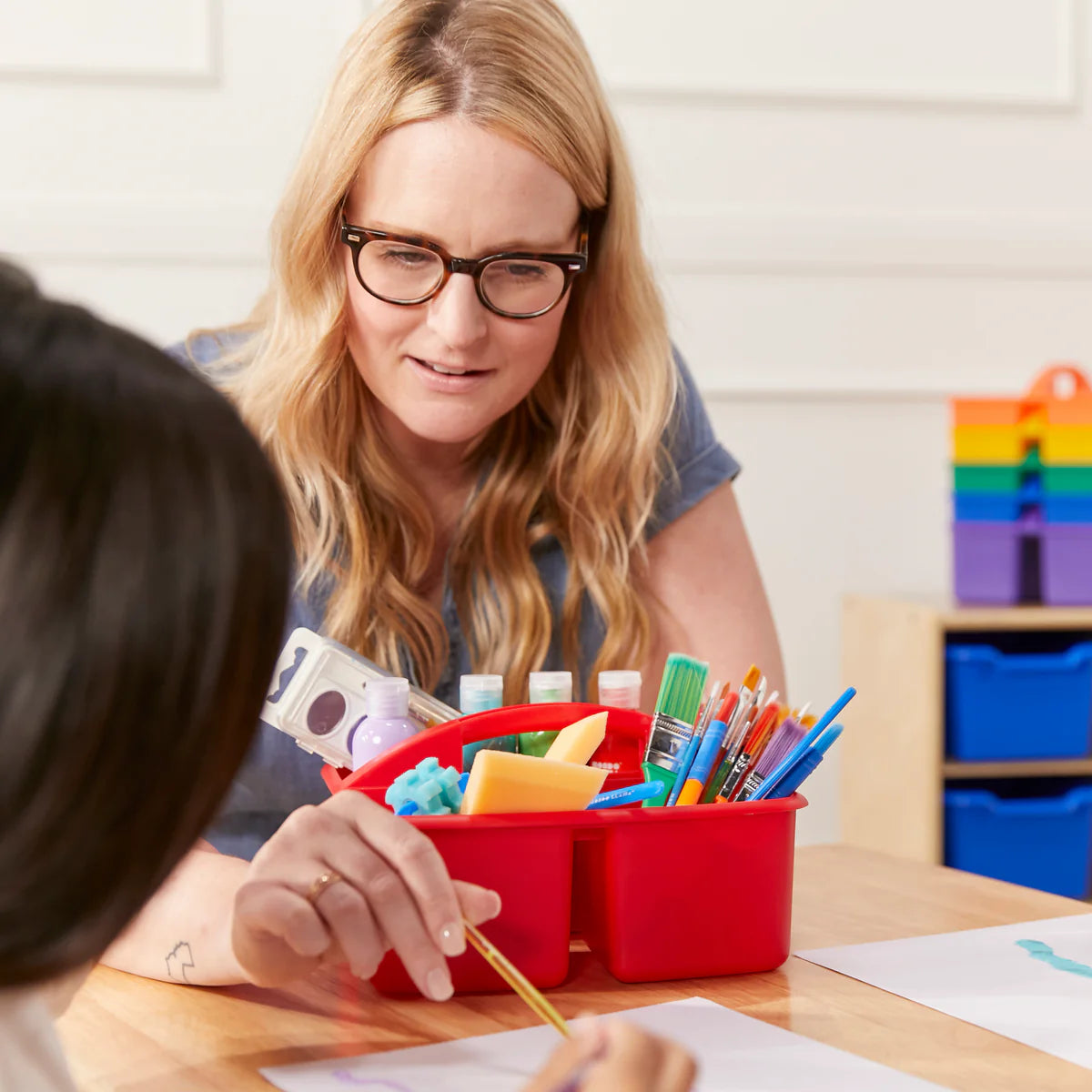 在課堂上,整理箱有助於促進教學並鼓勵團隊合作活動。這些多功能儲物容器可輕鬆運送到工作站,用於進行藝術課程、科學實驗或 STEAM 活動。可以利用隔間按顏色、大小、形狀或其他特徵對物品進行分類。為特定主題創建工具包,例如包含溫度計和圖表的天氣工具包。儲存用於畫畫、刷子、黏土和其他材料的藝術用品。小朋友們將在清理過程中學會組織的重要性,將筆、剪刀、膠水和蠟筆放回指定的隔間。
