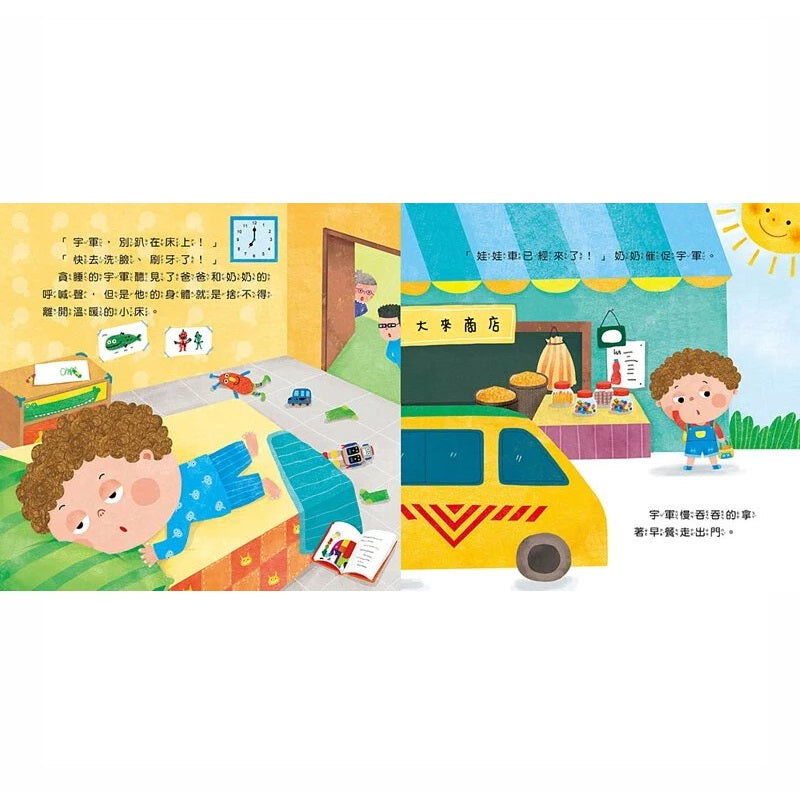 貼近生活經驗:看似平鋪直敘的故事情節,搭配了角色互動的對話、童趣的圖象,以及讓人會心一笑的轉折點,把生活習慣繪本變好玩,用不說教的方式讓親子溝通更順暢。
