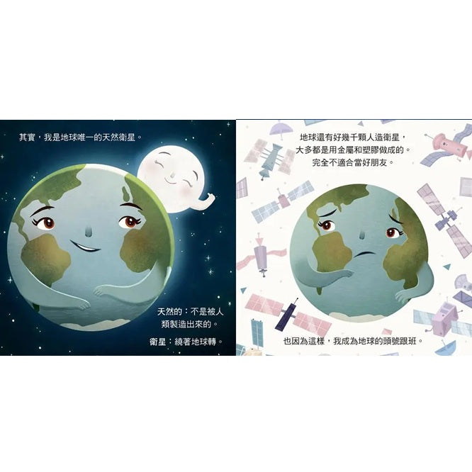 本書中介紹月亮和地球密不可分的關係,圖文並茂的方式讓小讀者能夠迅速學習到和月亮和太空中其他衛星相互的關係相關,並且透過圖片深植小朋友的記憶中。