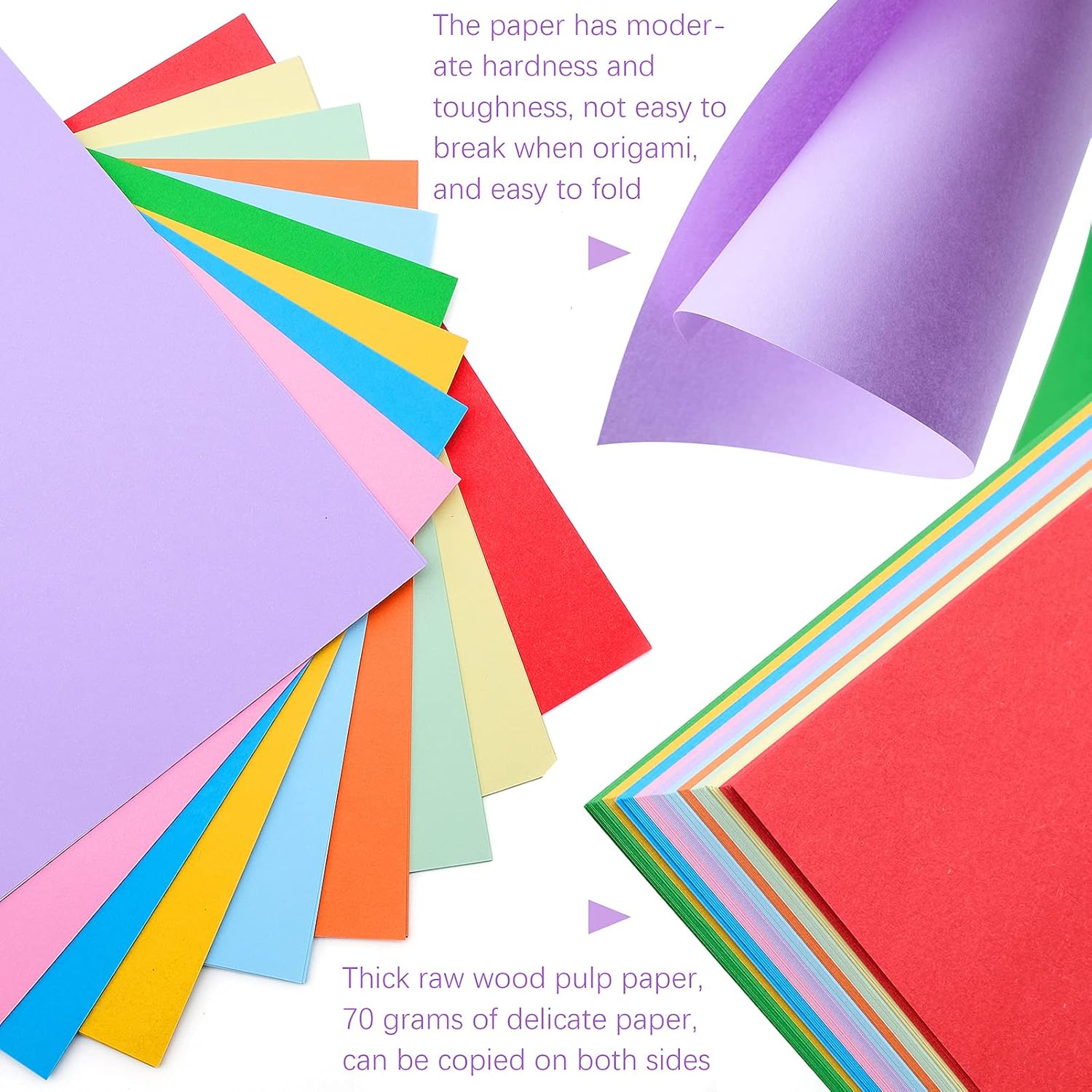 The colored papers are made from raw wood pulp, making them thick and sturdy. They have good toughness and are not easy to break. Eco-friendly and odorless, they are safe to use.