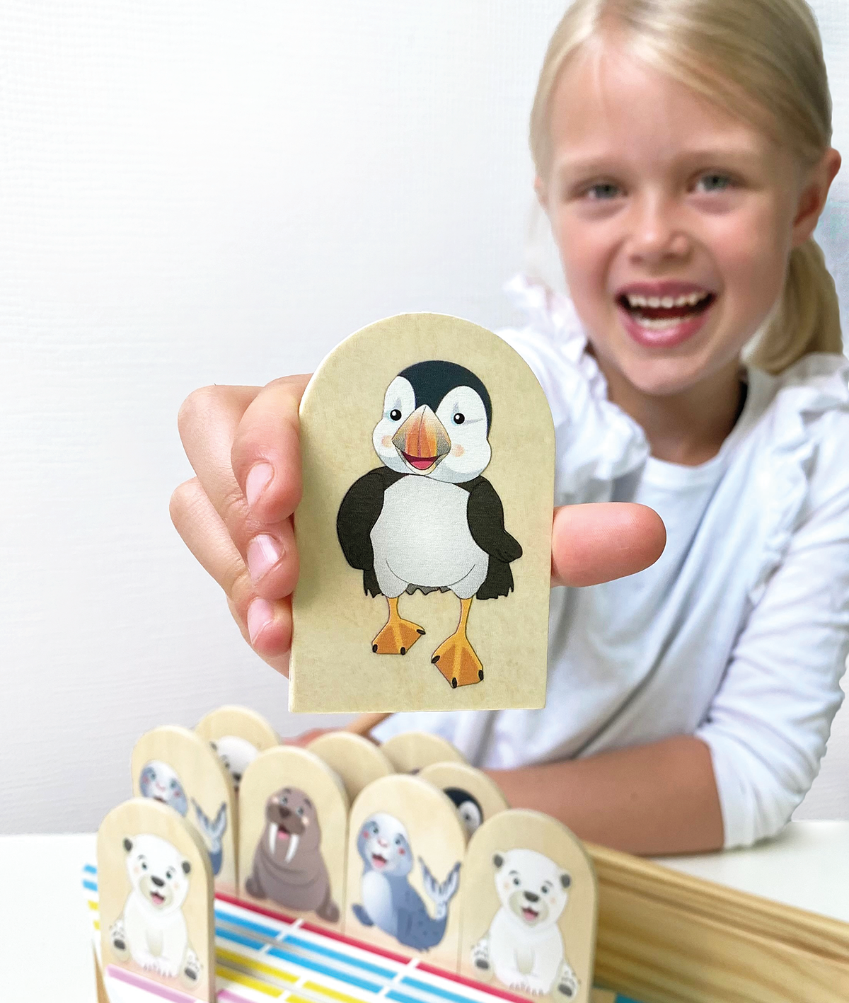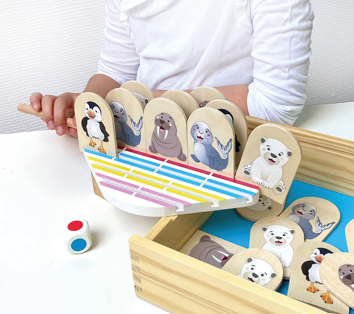 The animal friends in the Arctic are having loads of fun playing and all want to jump back into the water with a huge splash. Who will be the first to jump? Which way is the quickest? Only the player who can observe and concentrate the best can win. A game with simple rules for the youngest players to train first colour recognition and fine motor skills. ¡§SPLASH- Let?s go!¡¨
