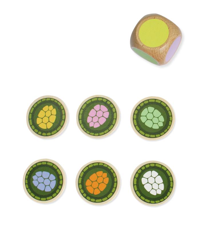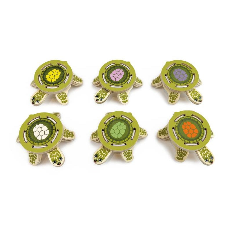 This "Turtle Island" game includes 6 turtles in different colors. Children can choose their favorite color to start the game. The colored discs serve as reminders of the turtle they have chosen, making the game more fun and easy to identify.