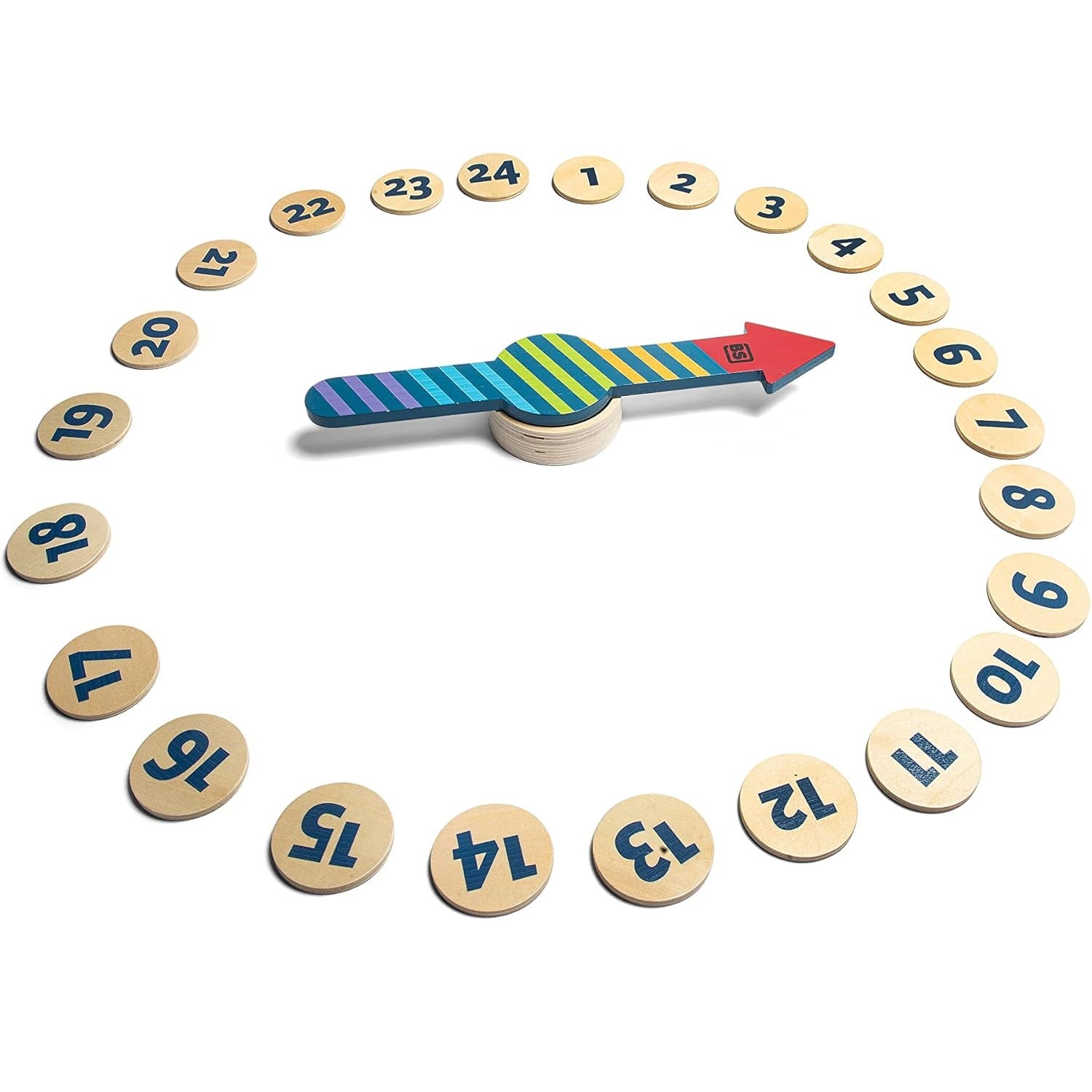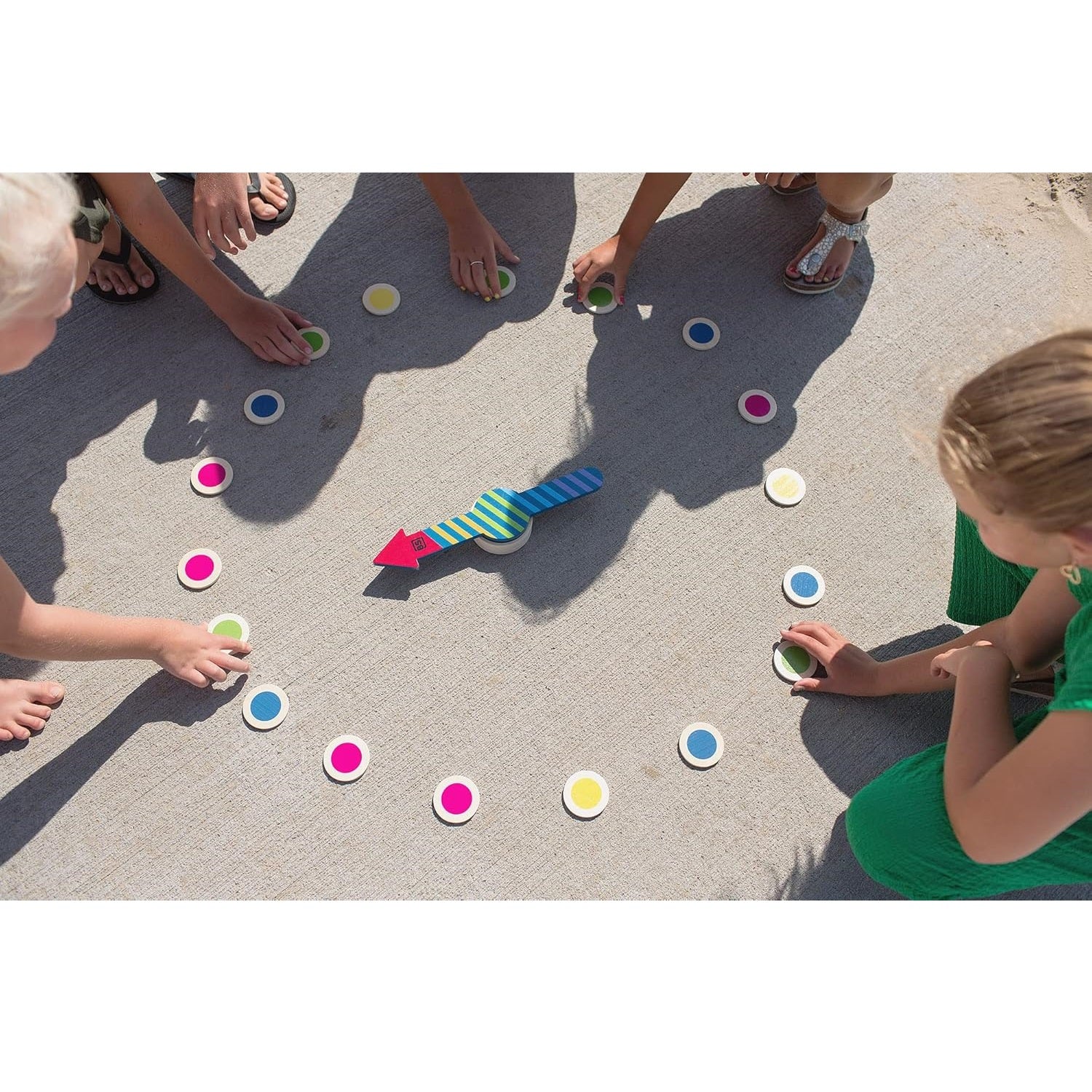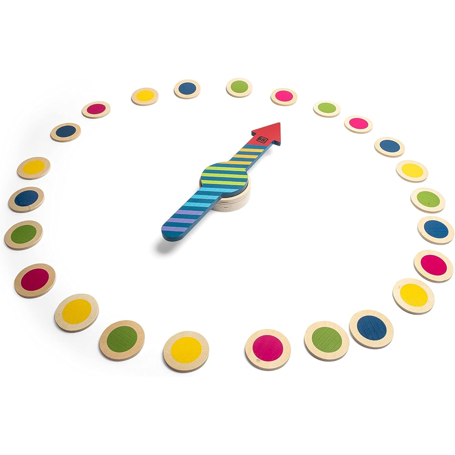 Unleash your creativity with this game, as it offers countless ways to play. Set a command, stand in a circle with all players, and spin the arrow to see who it points to. The player it lands on must complete the task. Alternatively, place the numbered discs around the arrow and come up with an activity. The number the arrow points to determines how many times the player should perform the command. You can also create fun math games or play color-based games. Includes an instruction booklet with multiple game variations.