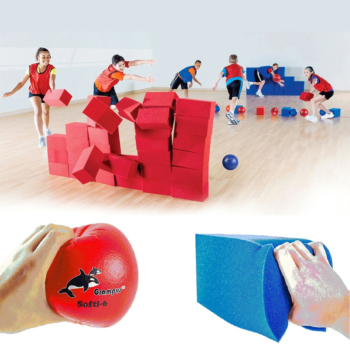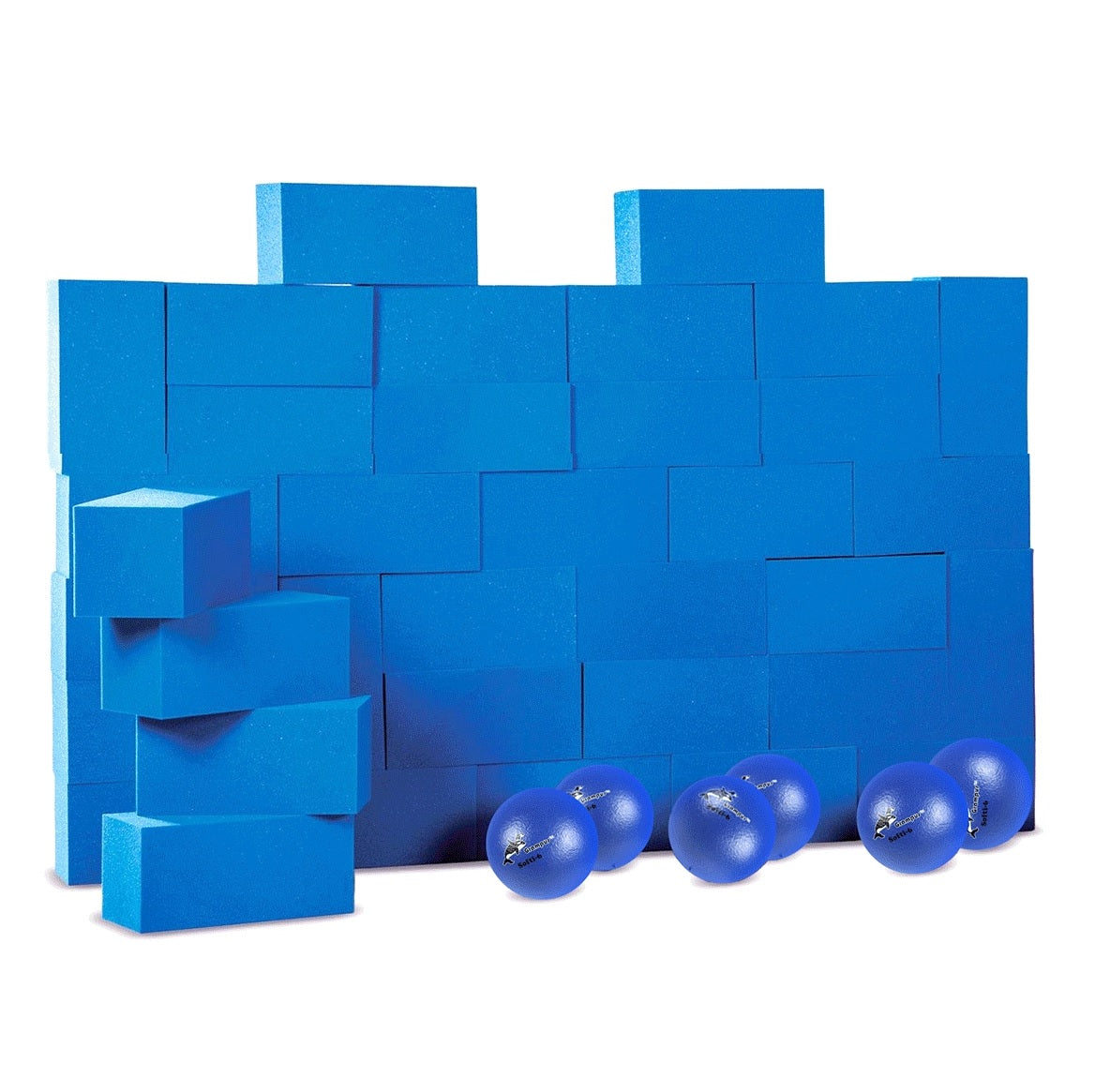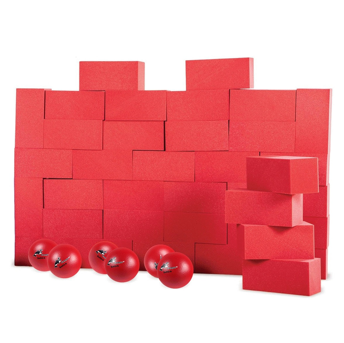 一套含72塊海綿塊(紅、藍各36塊)12只球;玩家們在保證自己隊伍的城牆順利壘起來的同時還要妨礙對方,這需要團隊協作。遊戲規則:跑到遊戲區域的中心去抓泡沫塊,他們用泡沫塊來建造自己的牆壁。在室內體育比賽中,球隊必須制定策略,讓誰來建造、防守或試圖撞牆。如果一個隊的牆被撞翻了,那些磚塊就會回到中心,然後這個隊就開始重建它的牆。