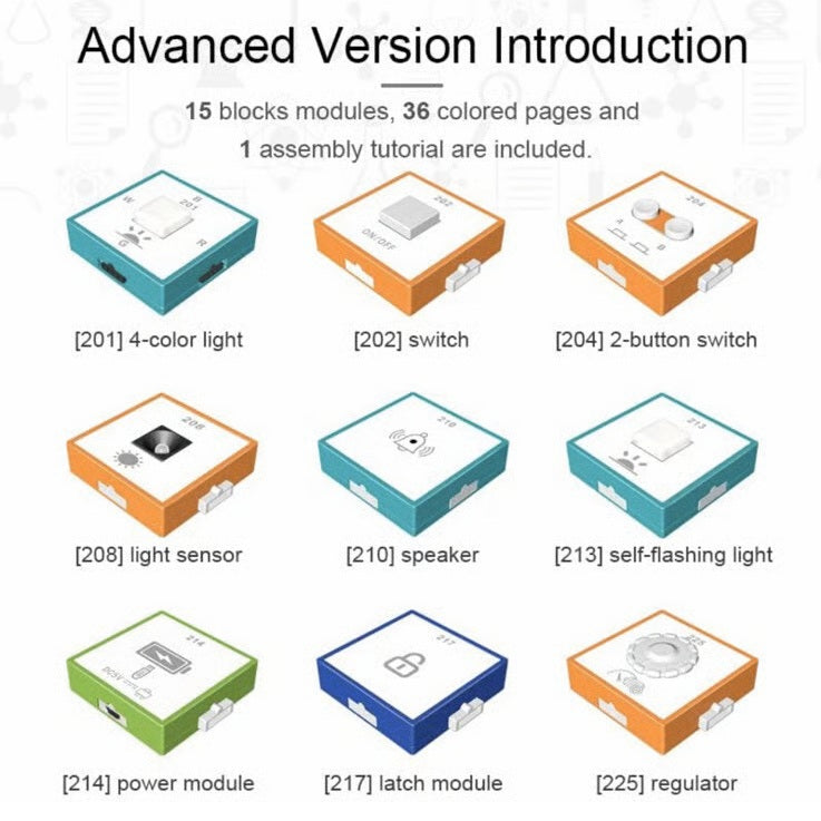 Enhance STEM Skills: Highly recommended by science and mathematics teachers, this kit includes 15 block modules, 36 colored pages, 1 assembly tutorial, and a USB cable with 1 magnet—all in one box! Through simple and safe circuit experiments, kids can develop their interest, logic thinking, imagination, and creativity in electricity.