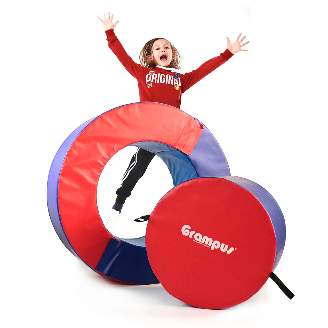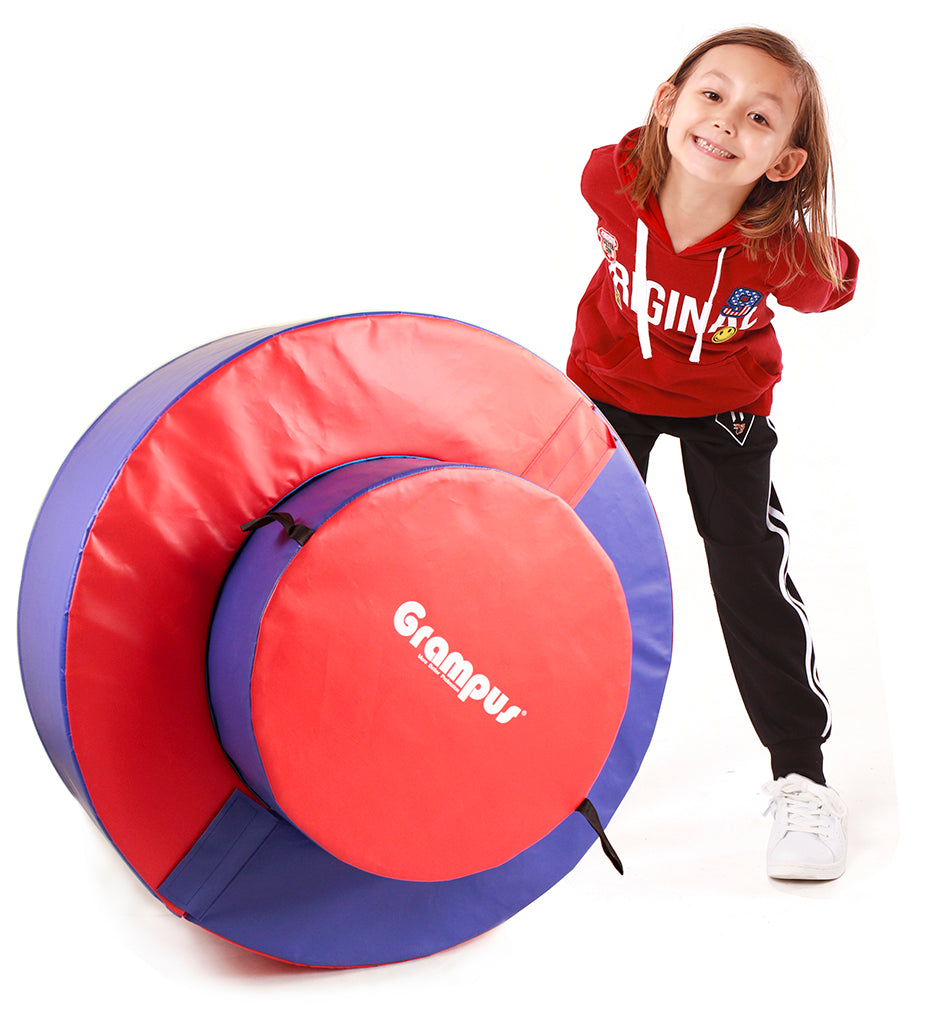 一套包含兩個半圓一個實心圓柱,可以拼成一個正圓,立起來可以推動行走,橫放可以進行平衡行走練習,圓中心還可以做為球池。小朋友們可以把它放當作城牆、進行躲避遊戲,還可以變成兩座小橋或組成S形平衡橋。一款非常實用的體能訓練教具讓小朋友可以練習多種運動技能,在難度、安全和樂趣上都是最佳的教具。(外徑為108cm,內直徑:86cm)