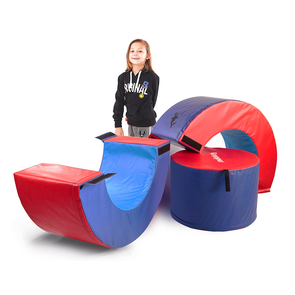This set includes two half circles and one solid cylinder, which can be assembled into a complete circle. When set upright, it can be pushed for walking practice, and when placed horizontally, it can be used for balance walking exercises. The center of the circle can also serve as a ball pit. Children can use it as a wall for hide-and-seek games, or it can be transformed into two small bridges or an S-shaped balance beam. It is a highly practical physical training tool that allows children to practice various motor skills. It offers optimal difficulty, safety, and fun. (Outer diameter: 108cm, inner diameter: 86cm)