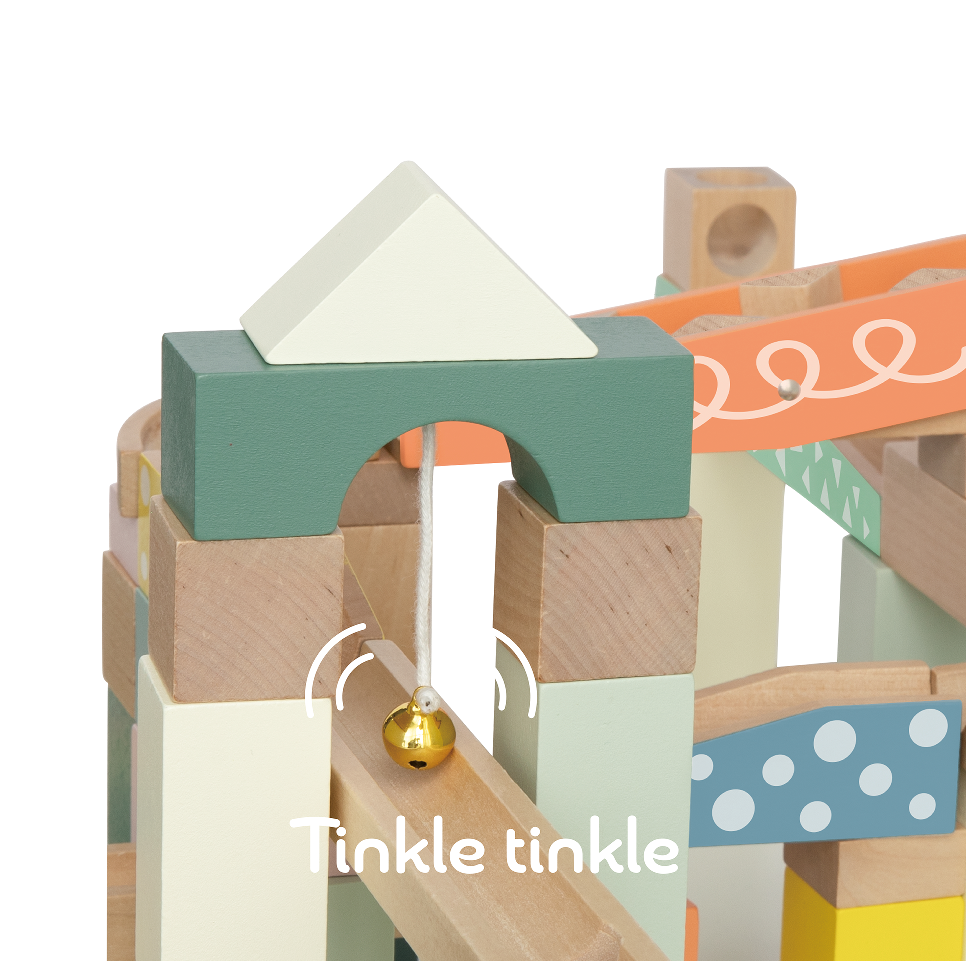 Introducing the Marble Blocks Ball Track from Germany's famous KELLY classic wooden toys, designed to ignite children's limitless imagination and creativity. This engaging toy set includes 62 assorted wooden blocks, allowing kids to build their very own unique rolling ball tracks.