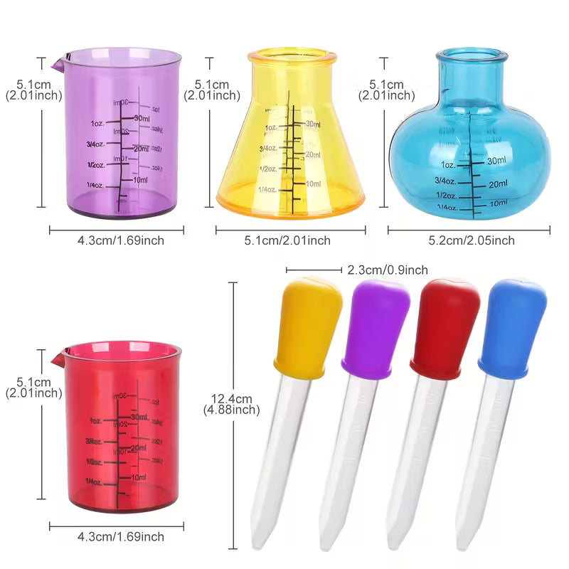 四種顏色組合:包括不同顏色的量杯,允許創意實驗和視覺學習。