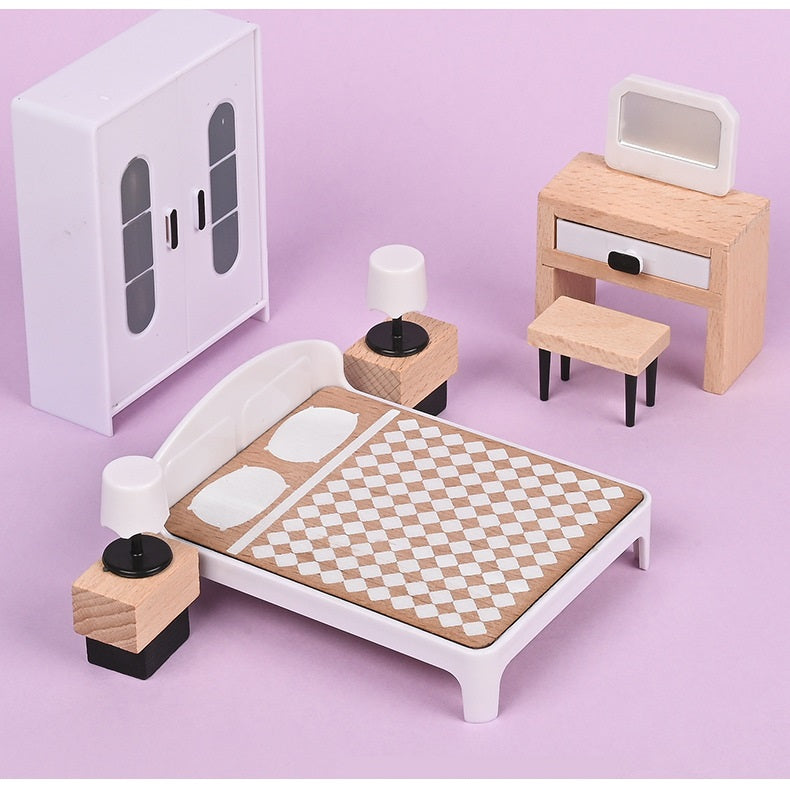 包含臥室、兒童房間、開放式廚房飯廳、客廳和浴室等多種家具套裝,打造完整的娃娃屋場景。