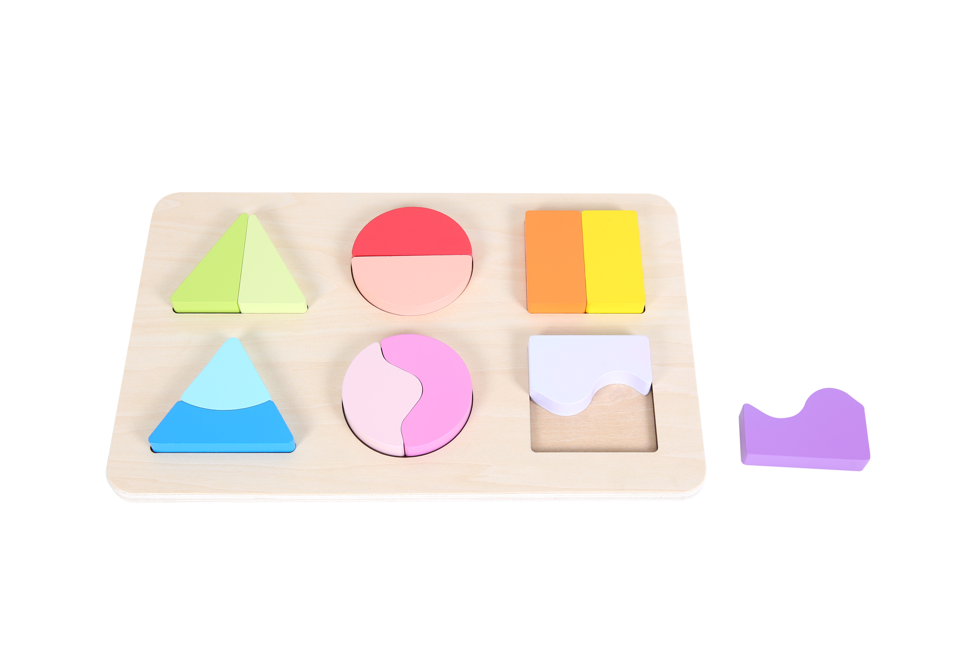 This beginner puzzle features 3 basic shapes, each divided into 4 colorful segments. Children can: