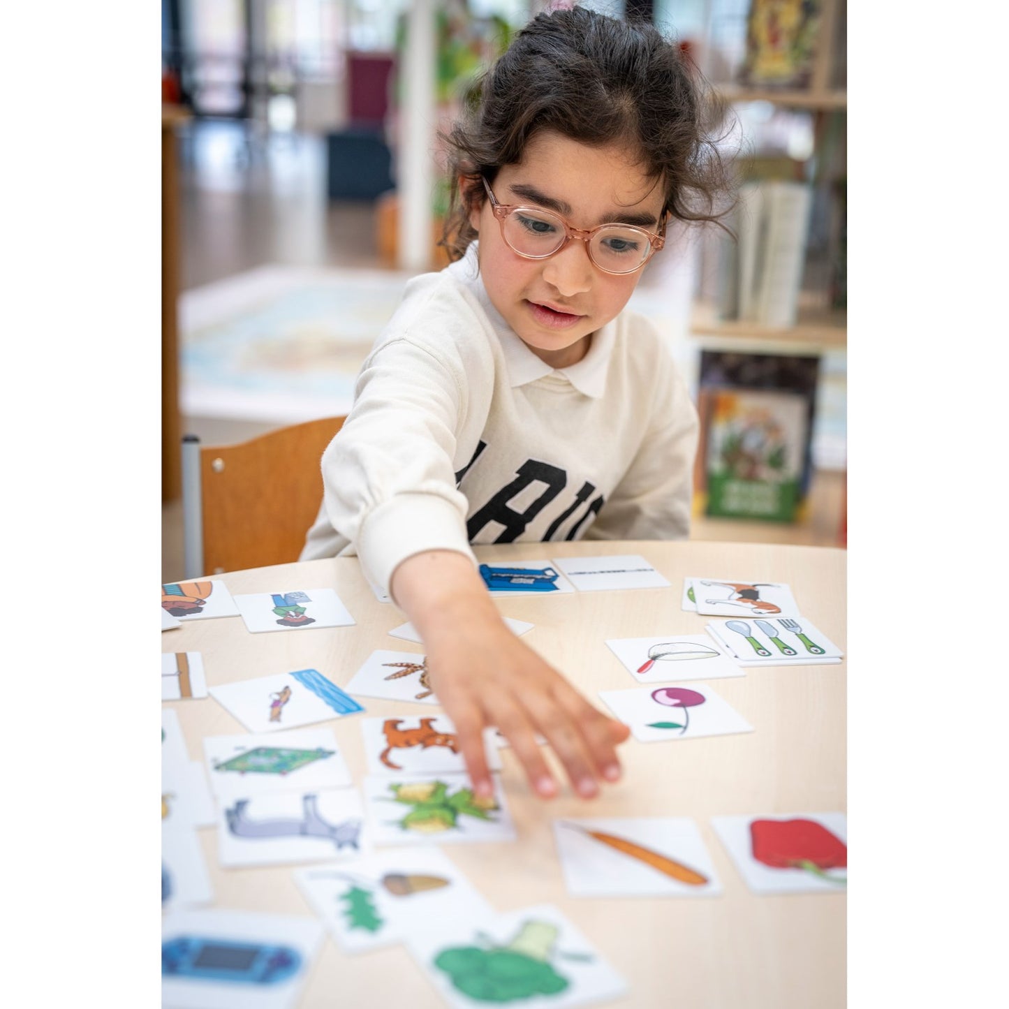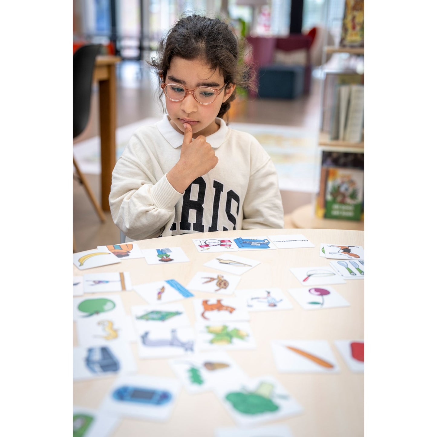 遊戲介紹:單人或組隊遊戲,找出屬於同一組的三張圖片卡,並解釋它們匹配的原因。也可以將全部卡片背面朝上做記憶遊戲。