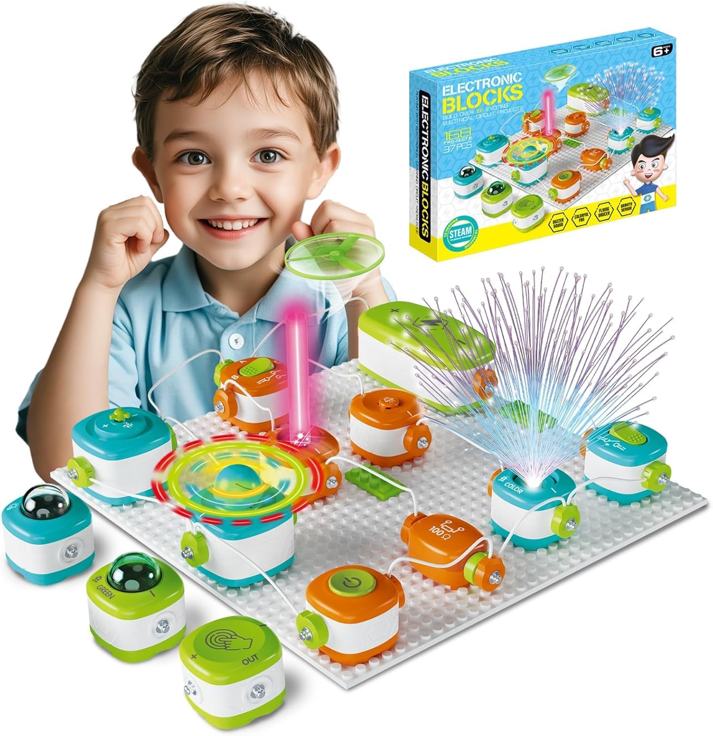 Age-Suitable Safety: The extra-large, shatter-resistant ABS plastic components feature a child-proof battery compartment and overload protection. Kids can easily and safely build circuits while developing their creativity.