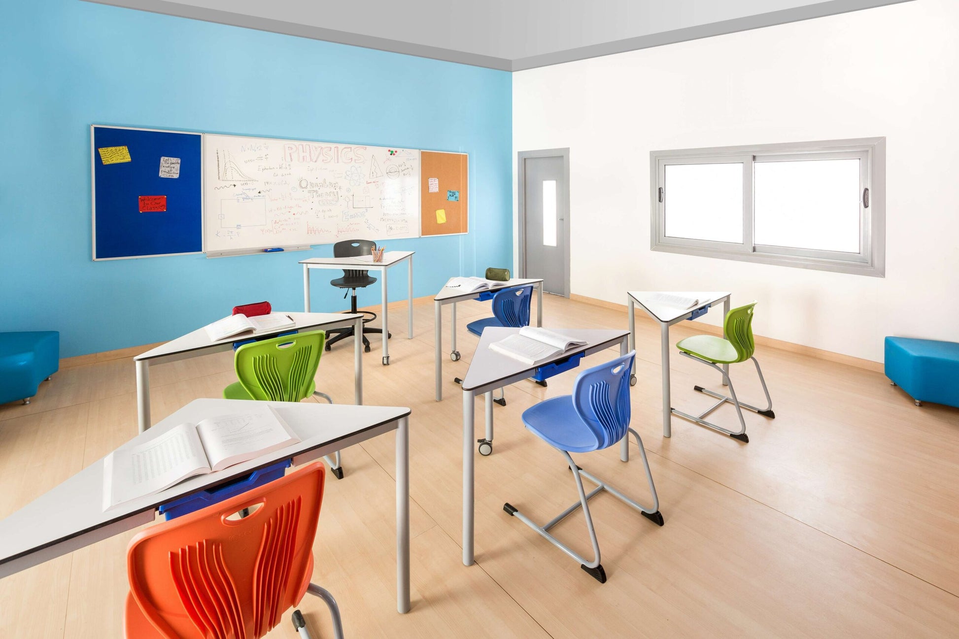 Modern cantilever design absorbs the bounce of active children, reducing the burden on teachers.