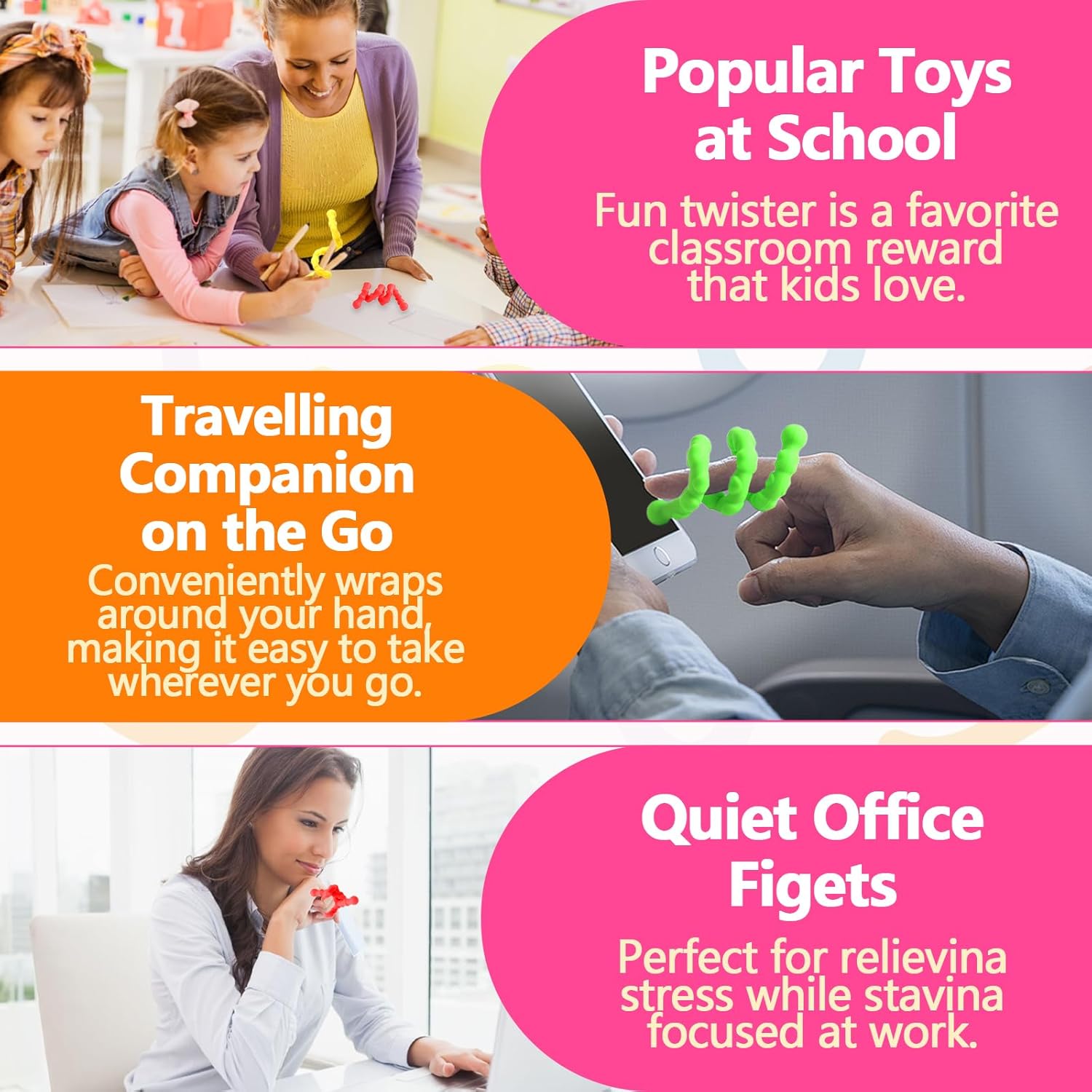 - TAKE THEM ANYWHERE Bend them slightly around your wrist or fold them into your bag for fun on the go. Perfect for students, office workers or anyone looking for relaxation, sensory toys provide quiet, lightweight entertainment