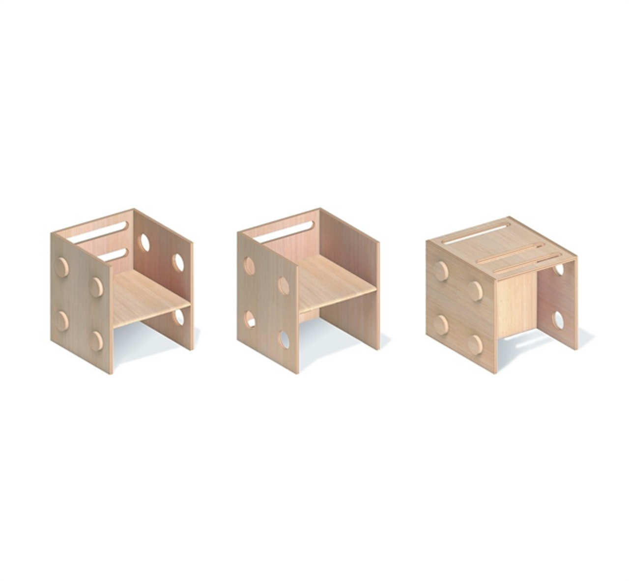 A new and original multipurpose chair designed for novel use, with 4 holes and 4 beveled buttons, GAM Pluripiu can connect with each other like parts of a giant puzzle.