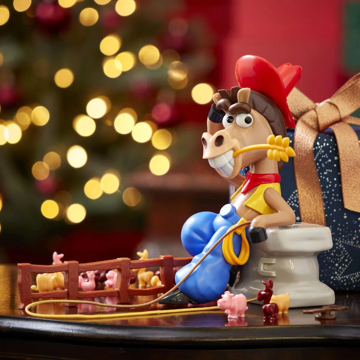 Howdy partner! This cowboy is keepin’ a watchful eye over his farm and isn’t afraid to hogtie any varmint who tries to mess with his herd. His lasso is fast, so step lively! Take turns trying to sneak his animals across the fence – but don’t get caught! His magical, spinning lasso will stop eventually to rope you in! Whoever rounds up the most animals at the end is the winner! Includes 1 One Trick Pony, 1 Cowboy Hat, 1 Hay Stalk, 1 Rock, 1 Fence, 15 Animals, 1 Spinner, and Complete Instructions. Requires 3 AA batteries, not included. Recommended for 2-5 players, ages 4 and up.