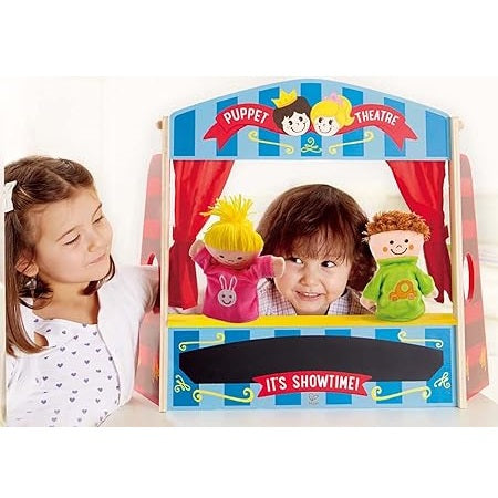 Take your seats, the show is about to begin the puppet playhouse from hape is a wonderfully theatrical play set for children with stories to tell, featuring live puppet shows and plays this perfectly tabletop stage draws back its red curtains and showcases each mesmerizing performance, while two hand puppets act out the exciting scenes of your child's imagination. Re-enact a favorite book or movie, or start from scratch and write an play. Encourages creative thinking and story-telling skills.