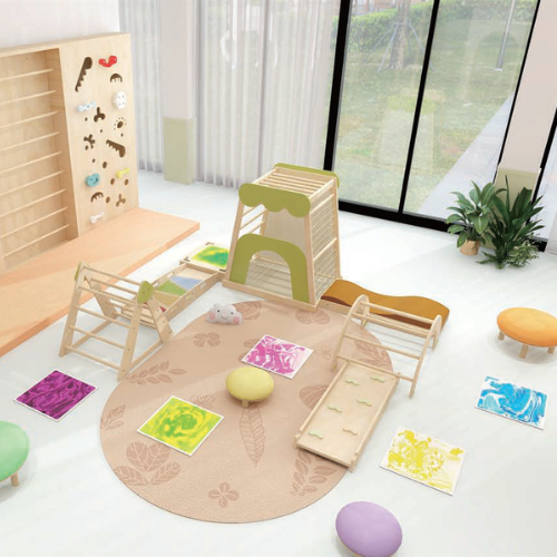 感官攀爬系列是一款高品質模組化實木製遊樂系統,專為促進兒童感官統合、身體協調、平衡能力及主動探索而設計。採用兒童安全等級木材,表面光滑處理並融入豐富色彩與觸覺元素,可自由組合配置,適應不同空間與遊戲需求。