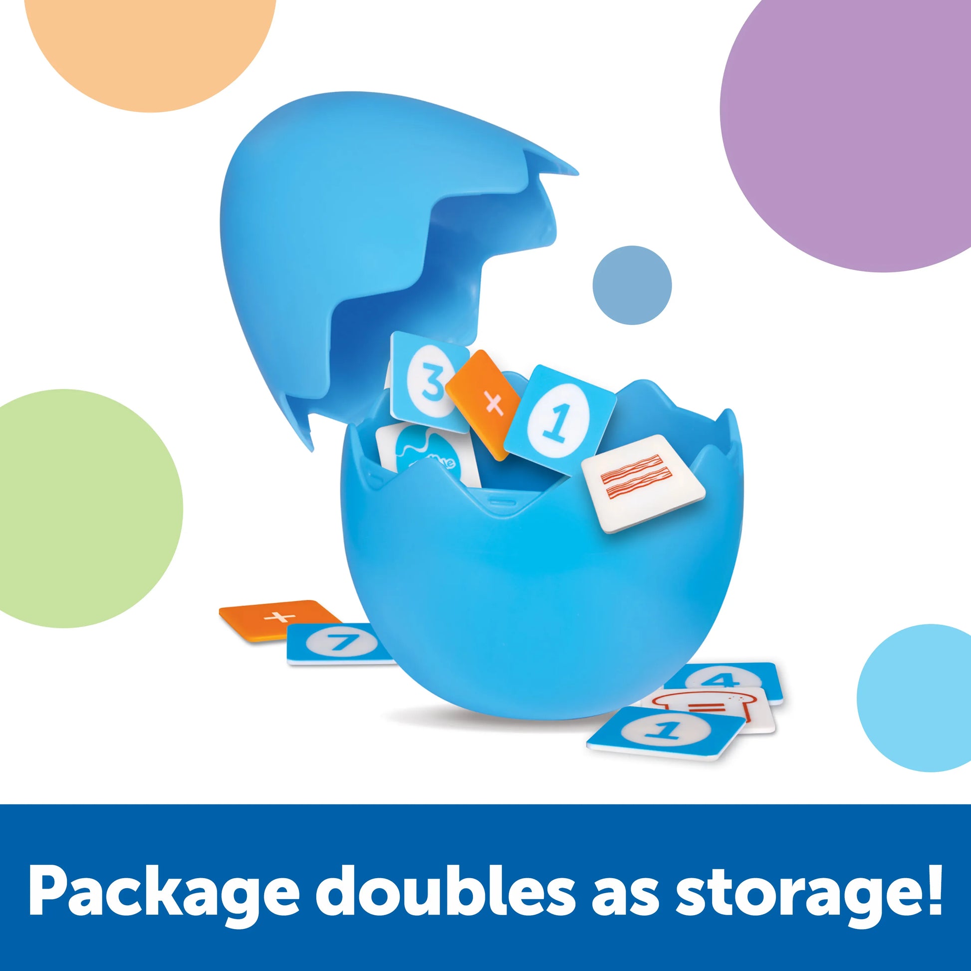 Rise and shine for all new math skills! Playable alone or with up to 3 others, this fun math game set challenges kids to build and solve addition and subtraction problems as they race to play all of their tiles. First one to finish wins! Includes 85 Plastic (1.3mm thick) equation and number tiles, an instruction guide with game rules, and a reusable plastic storage egg!