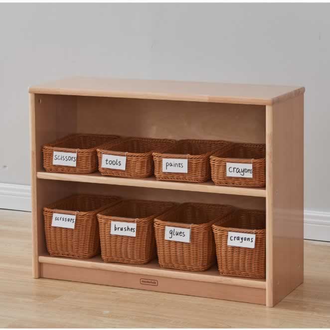 These synthetic large Wicker Baskets look terrific and will last a lifetime. Made from plastic but woven in the traditional wicker woven style they are made to fit all of the Masterkidz storage units. They are made to a standard base size but come in 2 different heights 80mm and 150mm. (Basket base size 180mm x 260mm). Set of 6.