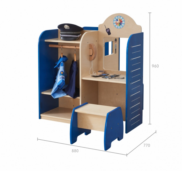 Can the police catch the thief and put him behind bars? This cleverly designed play police station has four different sides for play-clothes storage, a sergeant's office with seat, interrogation room and a jail. Everything needed for some wonderful cops and robbers role-play!