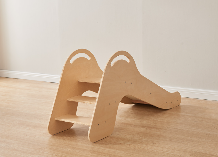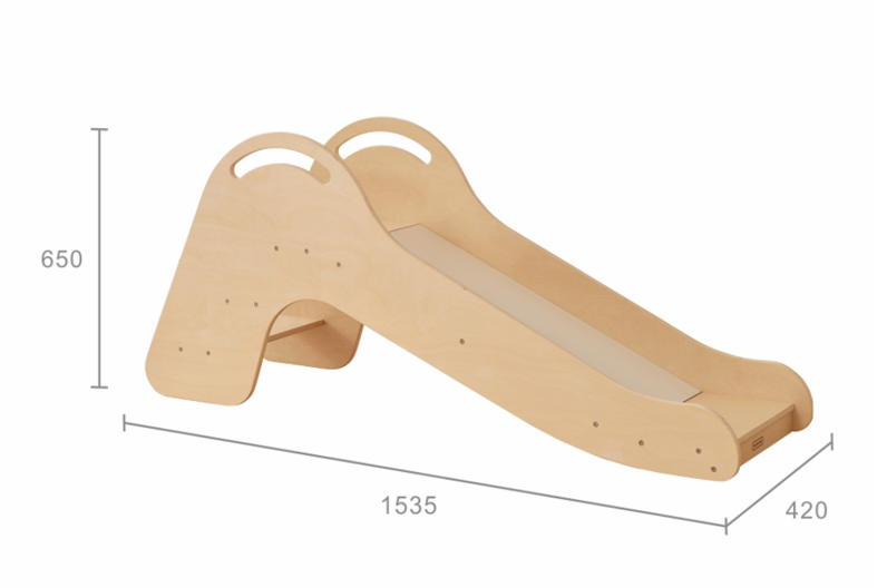 專為學齡前兒童設計的入門級滑梯,採用高強度樺木夾板製成,三階踏步搭配頂部握把,幫助孩子安全攀爬,並透過滑行過程自然發展平衡感與大肌肉協調能力。