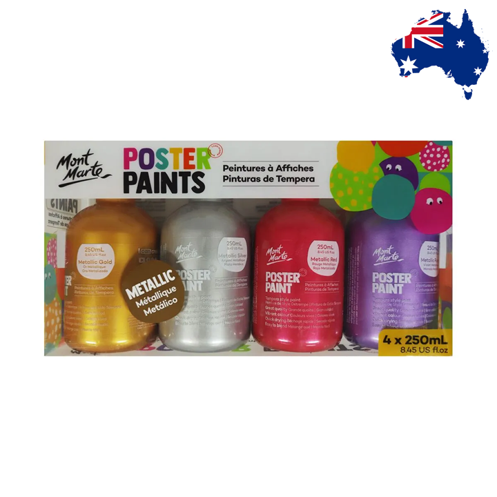 Mont Marte Poster Paint 250ml x 4pc Pack 廣告彩顏料 250ml4色套裝