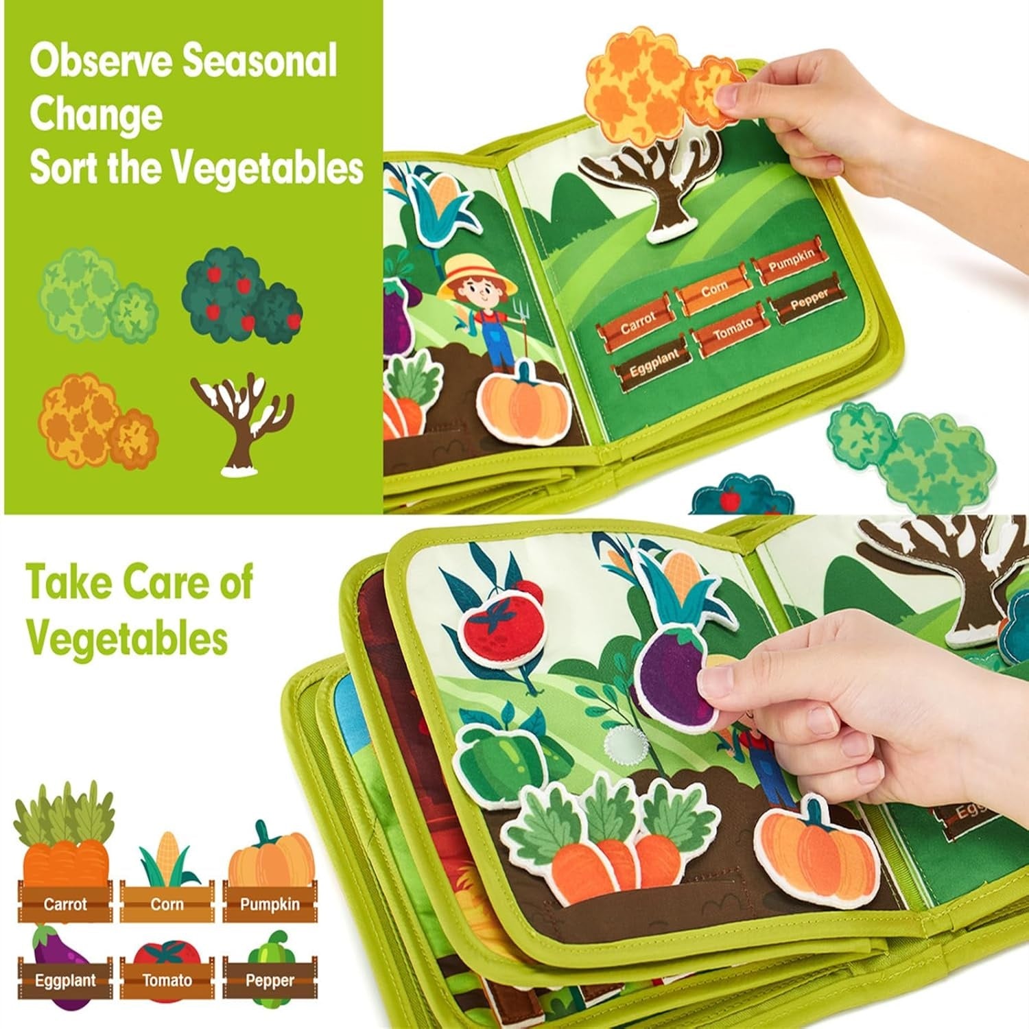 20-in-1 Busy Book: With 20 activities spread over 10 pages, featuring a variety of mechanisms to enhance hand eye coordination, fine motor skill and self-care skill.
