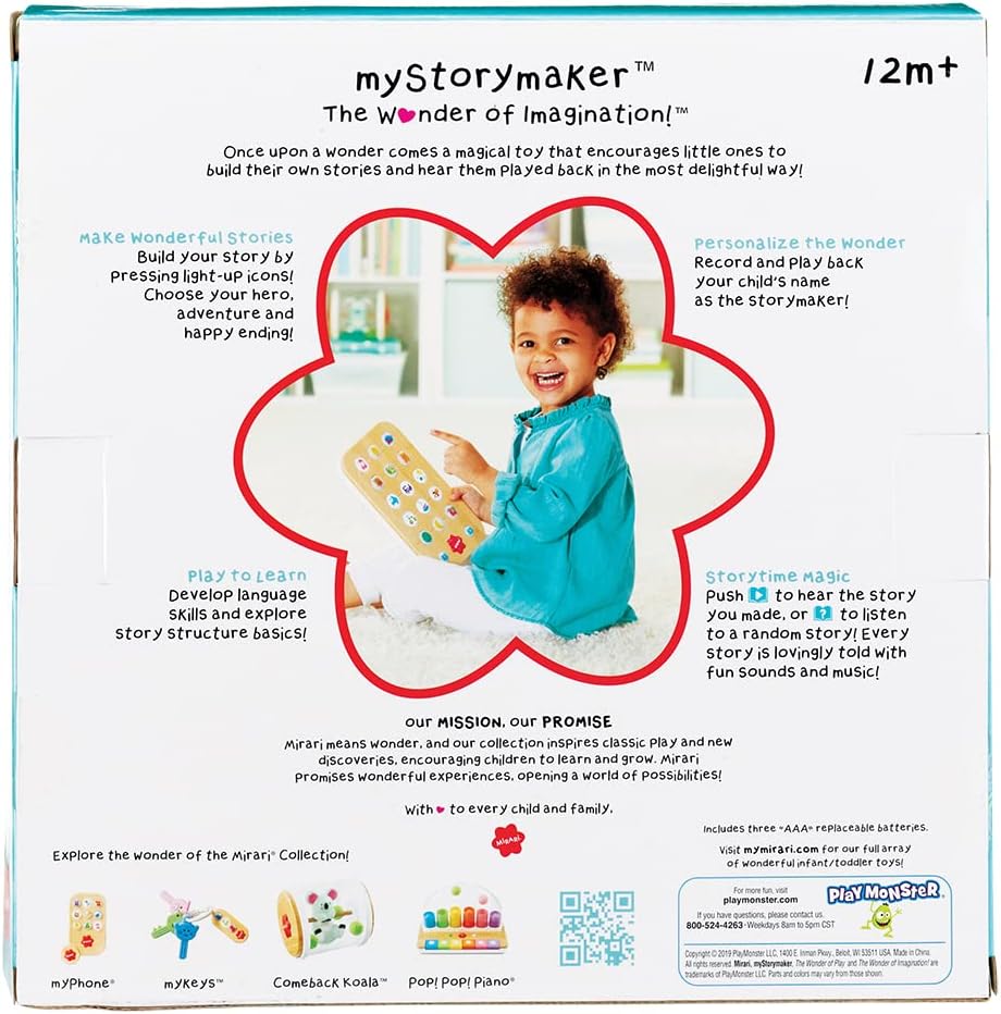 Play Monster Mirari My Story Maker 是一款充滿創意的故事創作工具,專為12個月以上的孩子設計。透過色彩繽紛的圖示,孩子們可以從每個部分(英雄、冒險和快樂結局)中選擇,輕鬆創作自己的故事!各個部分會點亮,引導孩子們創造故事。孩子們可以創作超過100個不同的故事,每個故事都包含有趣的聲音和生動的配音,讓他們全情投入。