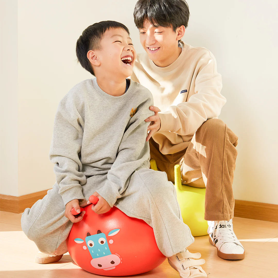 Bouncy ball! With handles, it helps develop movement, balance, and muscle use. It's fun to play with and can also be used for yoga exercises to build body balance. (Adults can play too!)