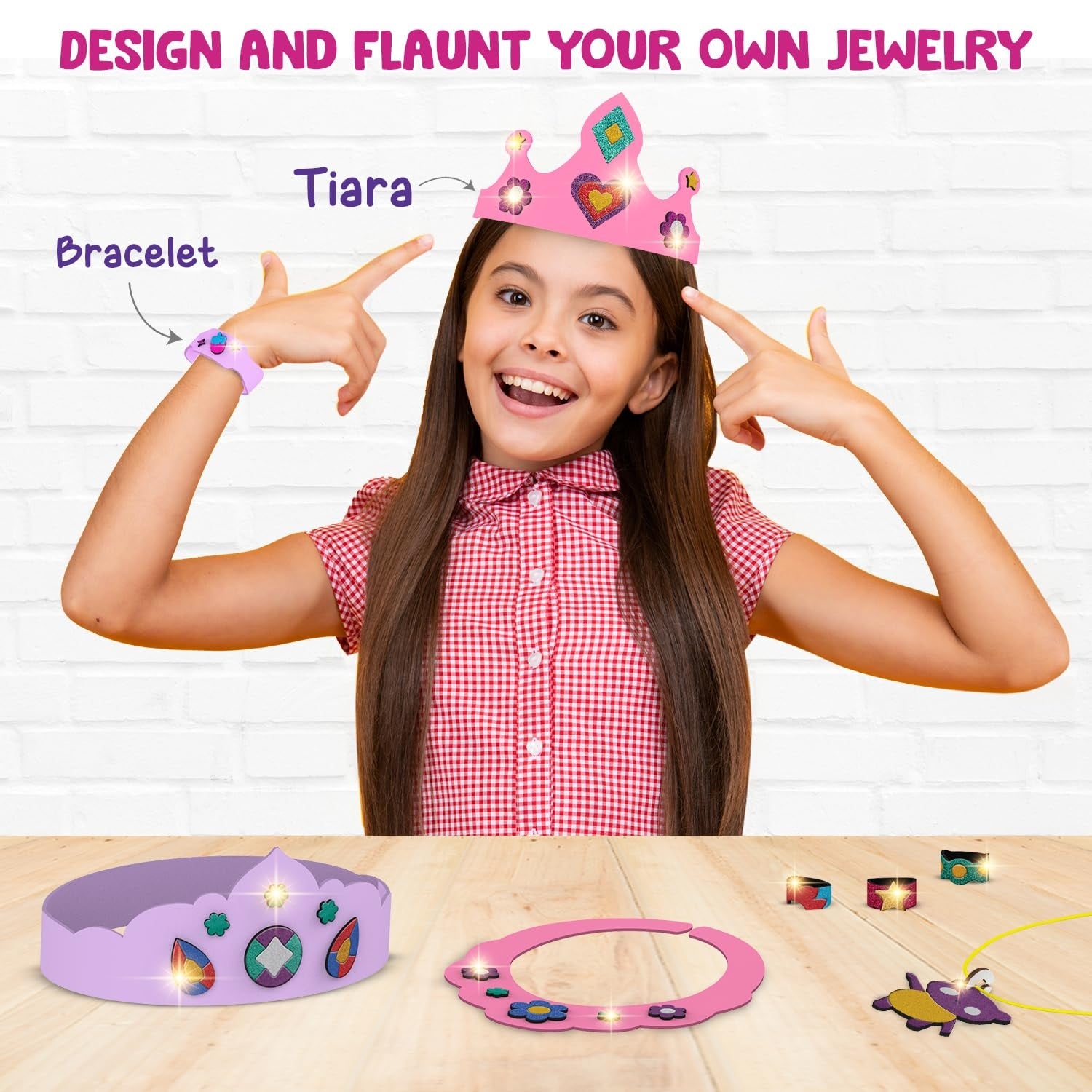 1. Engage & Create: Explore the art of jewelry making by pressing sparkly foil on foam stickers and creating unique designs.