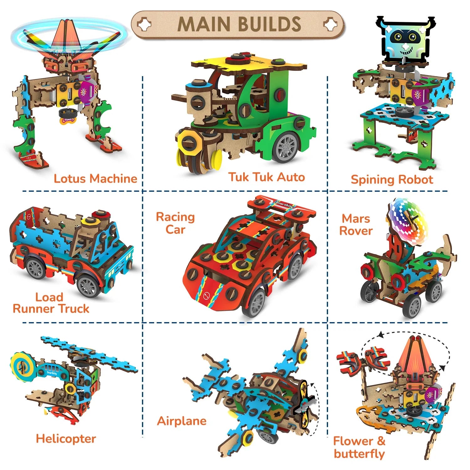 We're talking about the wildest creations here, from zipping tuk-tuk autos to whirling tornado twisters! This kit is also a sneaky way to teach your little geniuses about the forces of nature – such as force, momentum, and the mind-bending "persistence of vision."