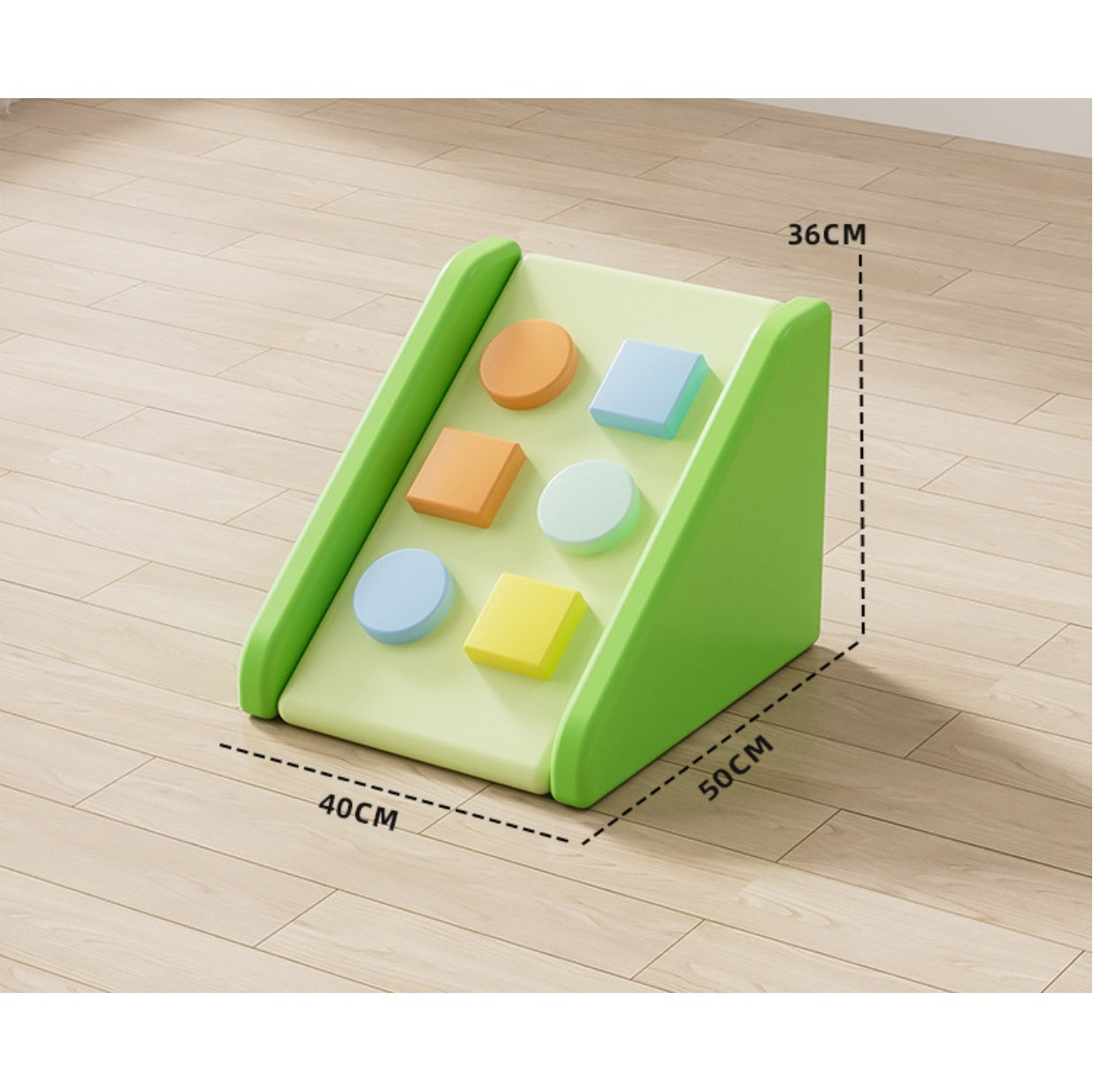 - All-in-one activity zone: gentle foam steps, climber, and a smooth slide