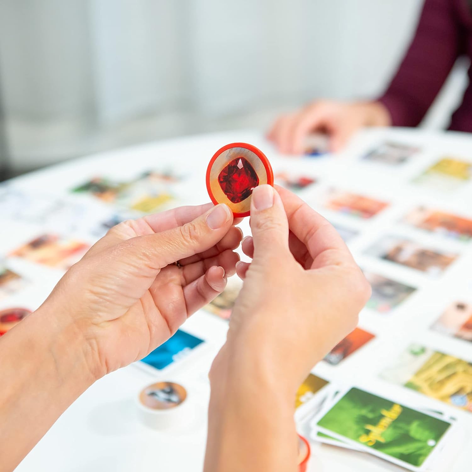 - Includes: 40 gems 'poker style' weighted tokens: 7 × 5 Colors (green, blue, red, White, black) + 5 Jokers (yellow)/ 90 development cards (63.5×88 millimeter): 40 level 1, 30 level 2, 20 level 3 / 10 noble tiles (60×60 millimeter)