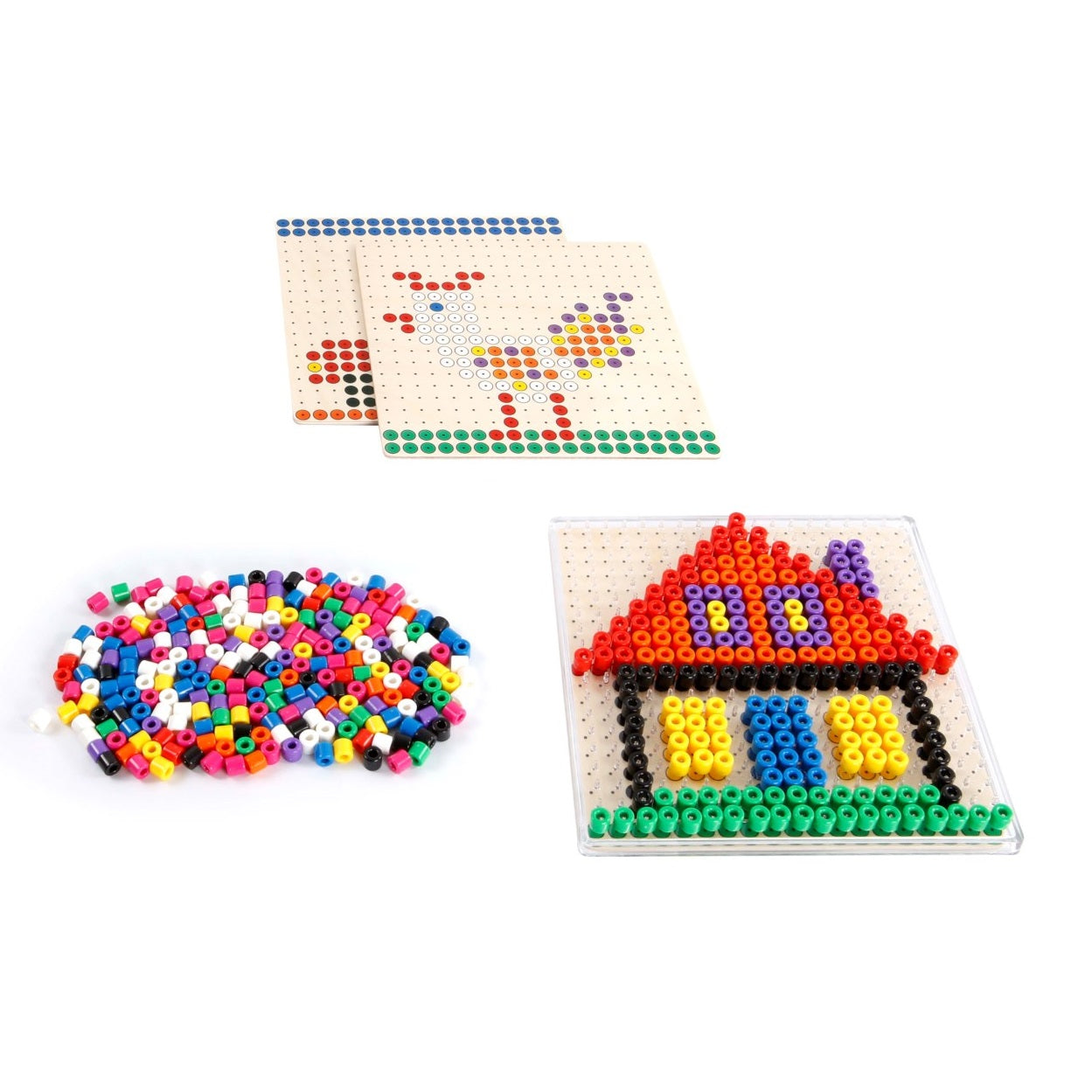 Make colourful patterns with beads. Place a transparent bead board on or next to an image card and add the beads. Stimulates hand-eye coordination, spatial awareness and creativity.