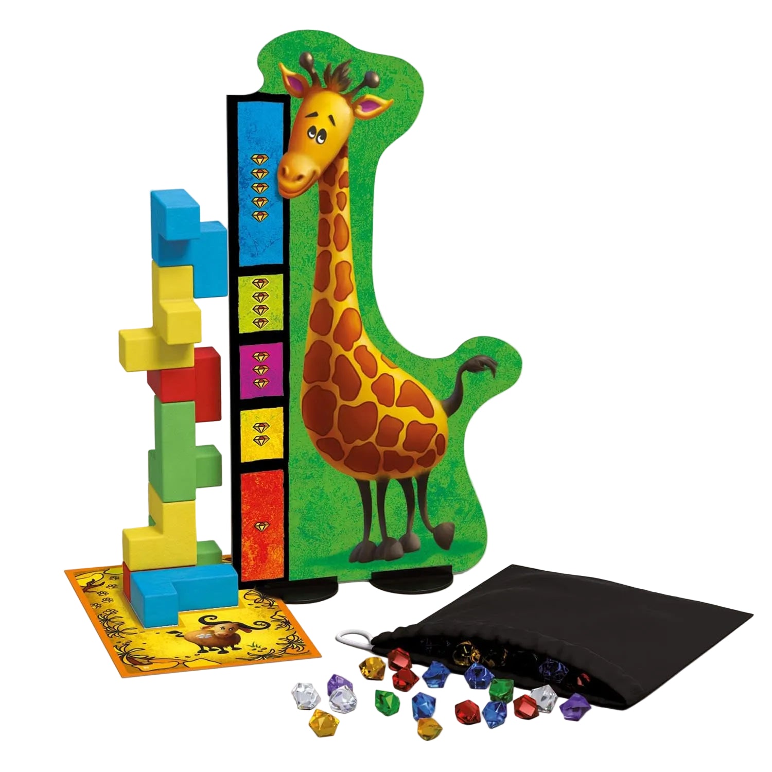 刺激的測量機制: 獨特的「長頸鹿測量器」讓孩子直觀地看到自己疊得有多高,贏得的寶石越多,勝算越大!