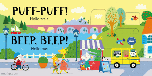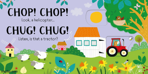 Move the sliders back and forth in this unique sound book to hear the building site come to life. From noisy diggers and clanking cranes to forklift trucks and road-rollers, the charmingly illustrated scenes are full of busy vehicles. Each slider has two different sounds on it—move it one way to see and hear one vehicle, then move it back again to hear a different one.