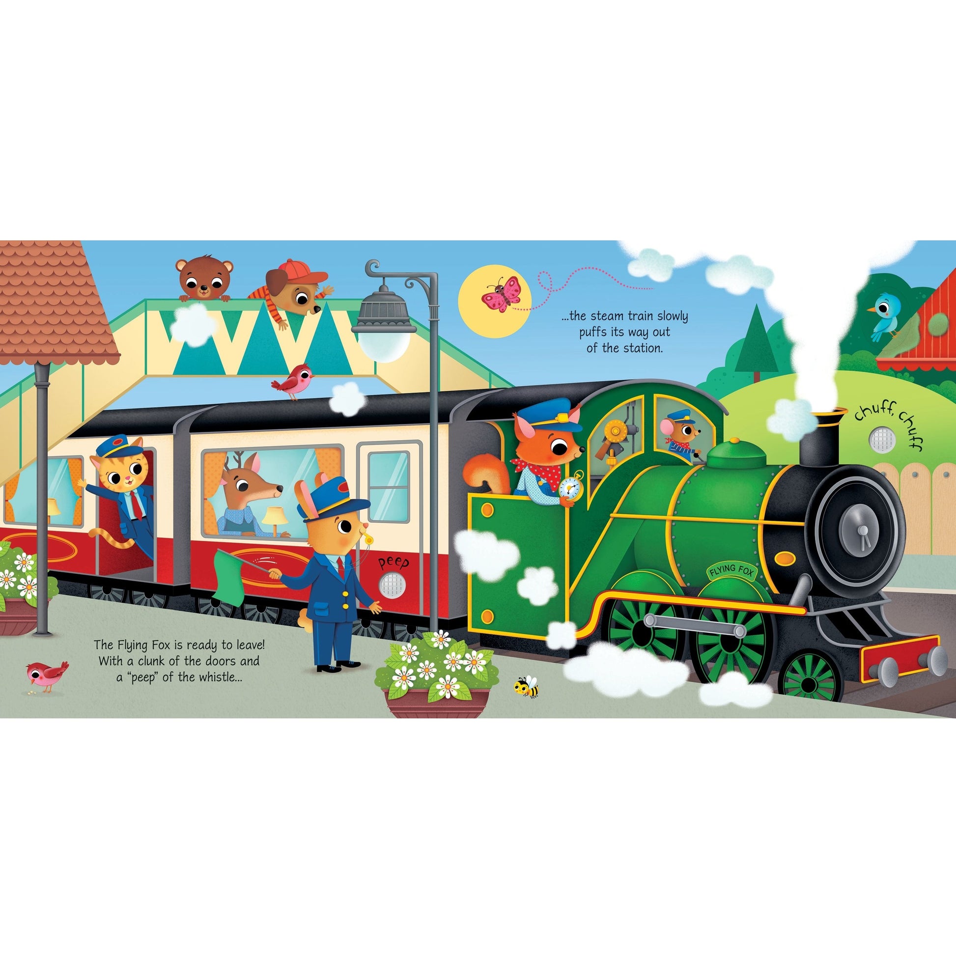 Little children will love pressing the ten buttons in this charming book to hear the exciting world of trains come to life. From a steam train chugging over a viaduct to a logging train screeching around a bend in the icy forest, there are all kinds of busy trains to discover, along with the different landscapes they travel through.