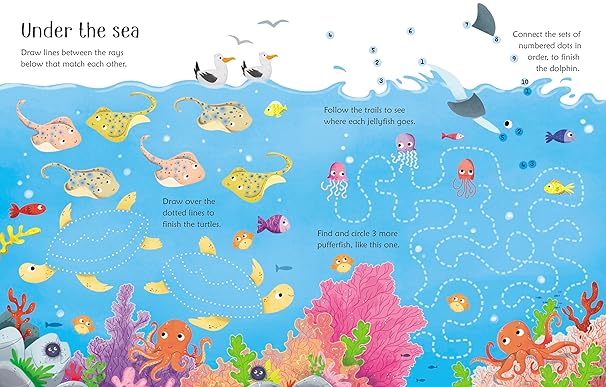 This fun book is a playful way for young children to develop their counting, observation and pen-control skills. Spot the differences between koalas, join the dots to make a dolphin, draw spots on a snow leopard and much more. Durable, wipe-clean pages mean children can revisit their favourite activities again and again.