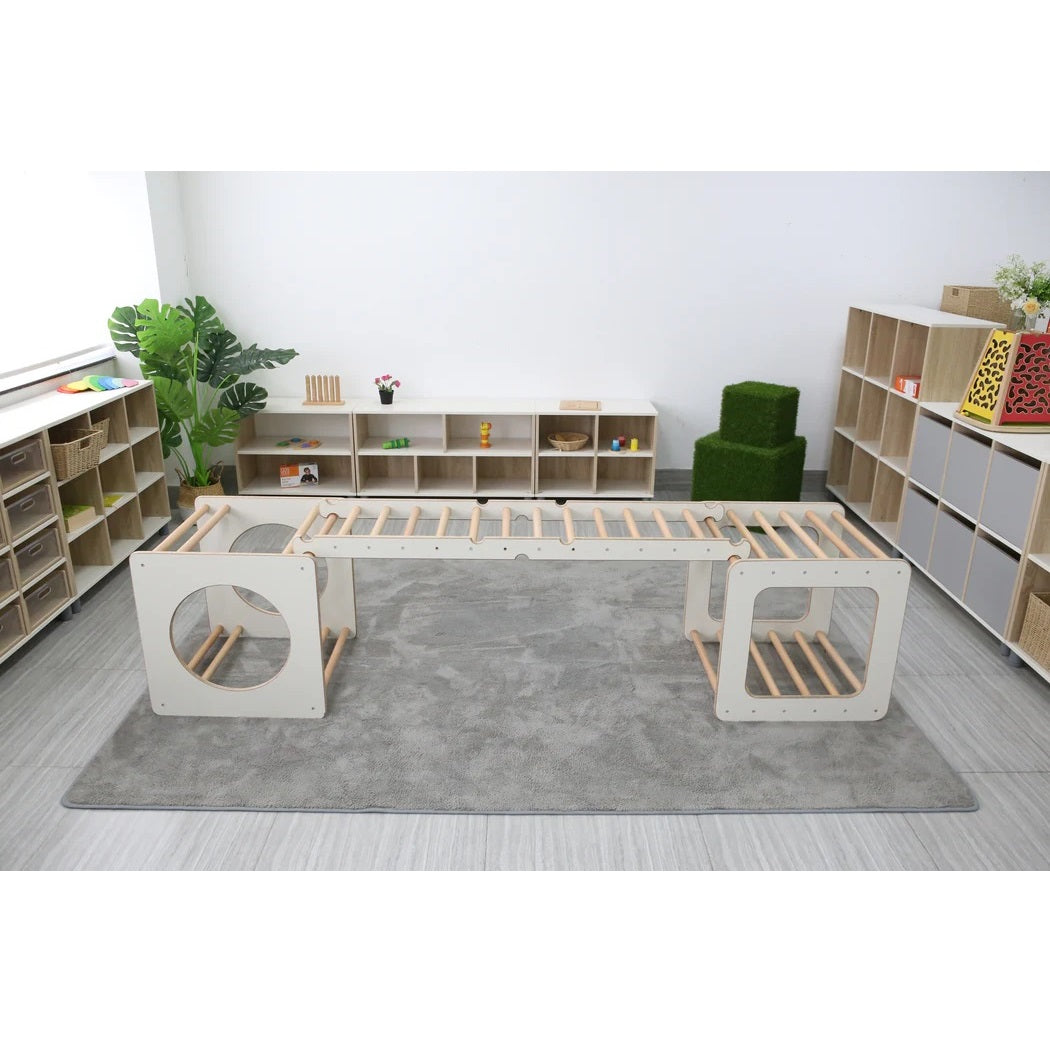 Authentic Pikler element with multi-angle positioning for progressive challenge.
